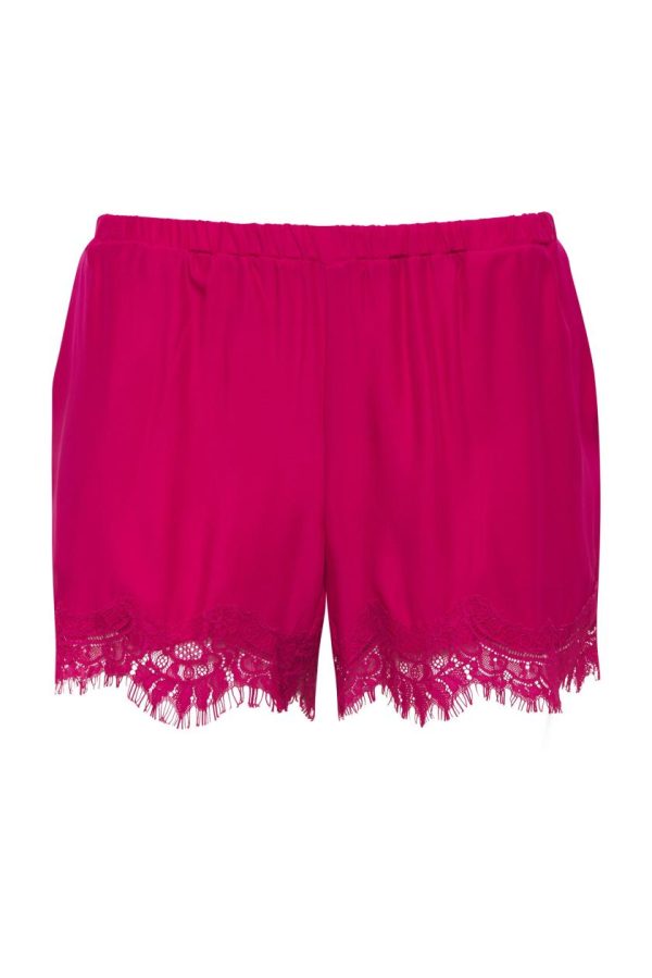 Comfortable silk shorts with elastic waistband and handy pockets. Elevated with Gold Hawk’s signature Coco Lace for a luxurious touch.