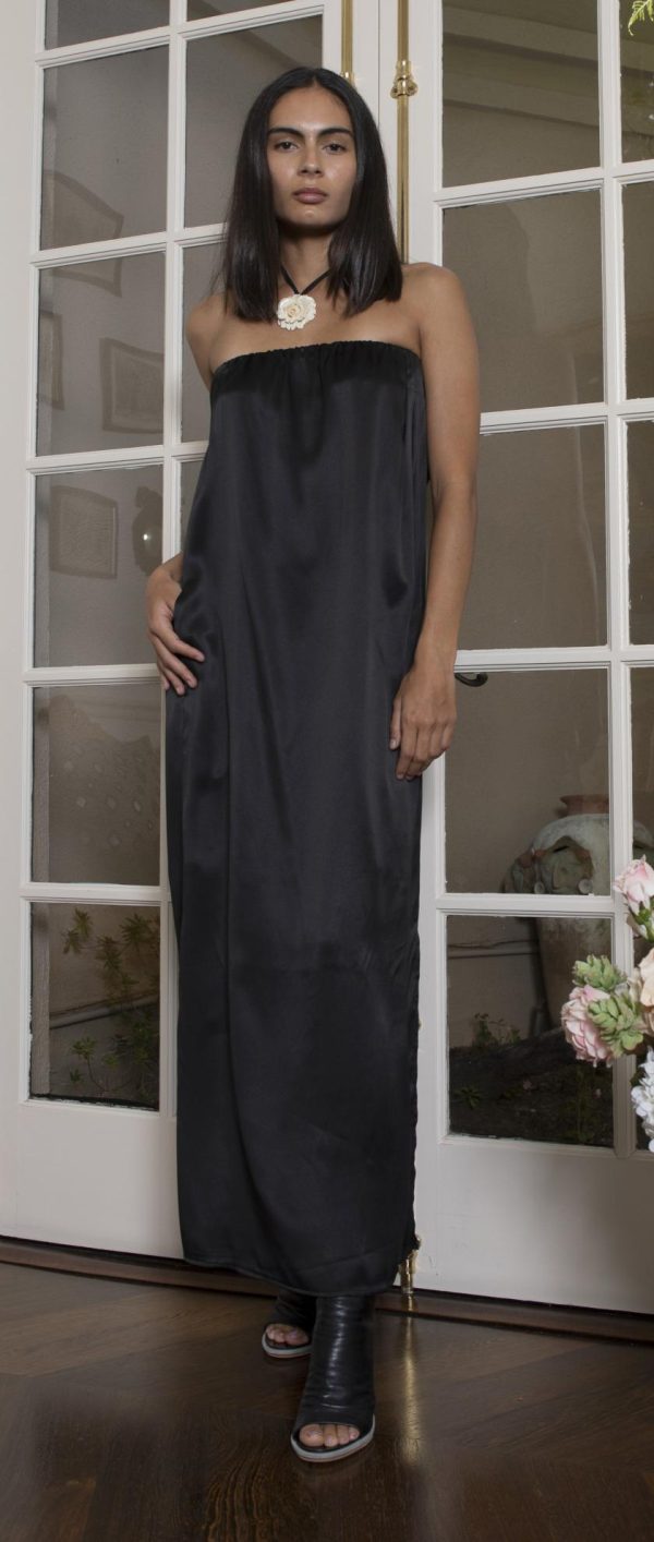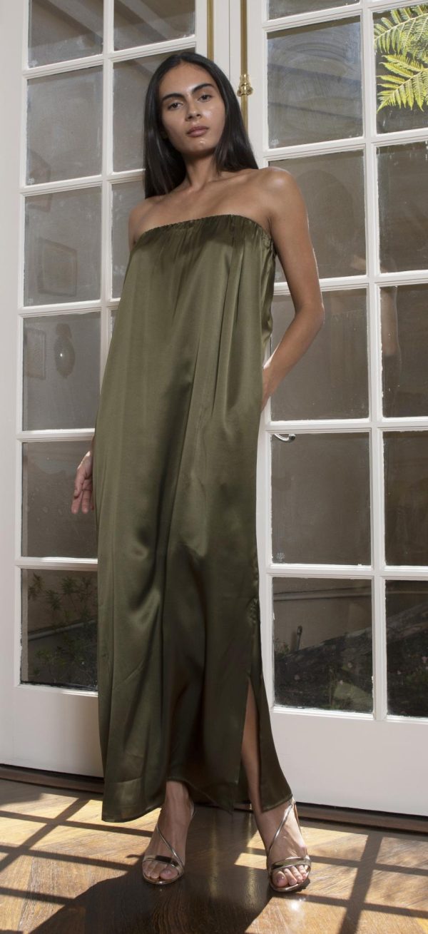 The Layla Pleated Long Dress is crafted with bias cut, pre-washed silk in a pleated design. The elastic strapless neckline ensures a secure and comfortable fit, while the included belt cinches your waist for a flattering silhouette. With a side slit and full lining, this dress is perfect for any special occasion.