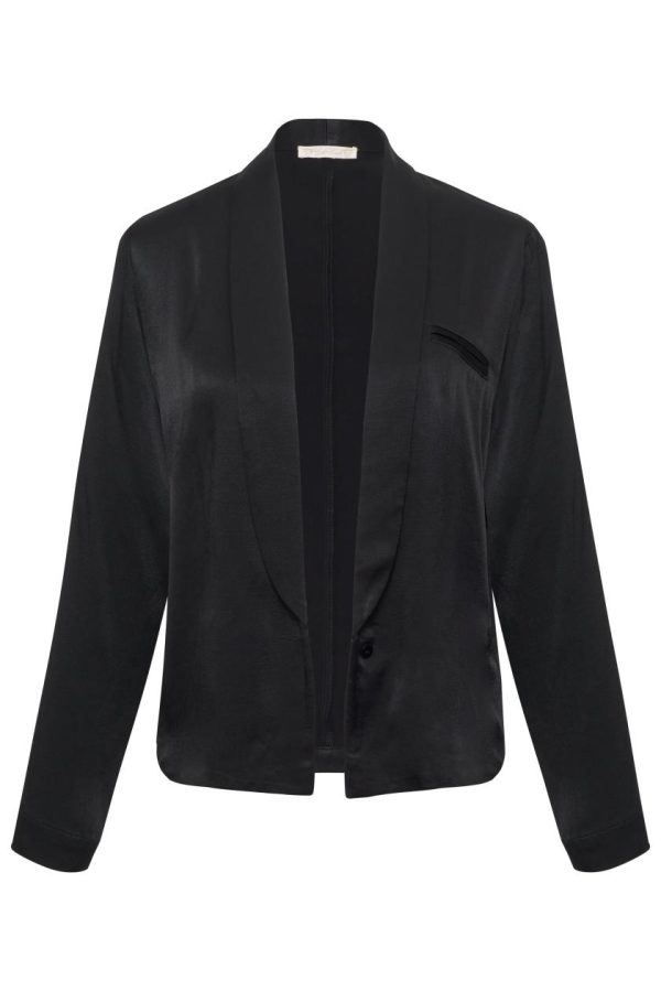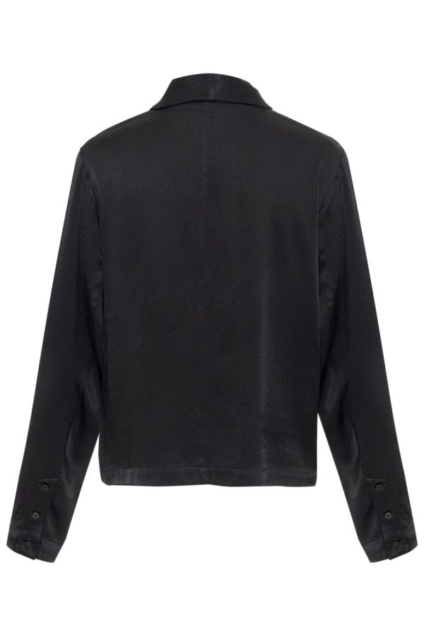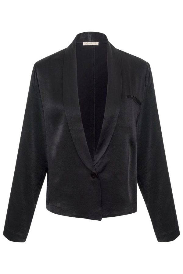 The Spencer Cropped Jacket will make you look elegant for any occasion. Its luxurious weight and shine will make you stand out in any crowd. The tuxedo lapels of this blazer complete the look with a sophisticated touch. It also contains one welt pocket on the chest.