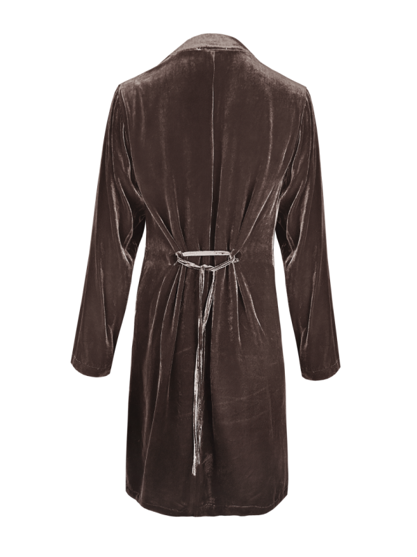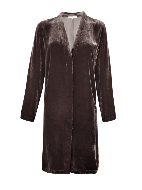 Wrap yourself in luxurious style with our Velvet Duster. This long black duster, complete with a belt, will add a touch of elegance to any outfit. Wear it without the belt with it’s hidden button placket, or belted on the back.