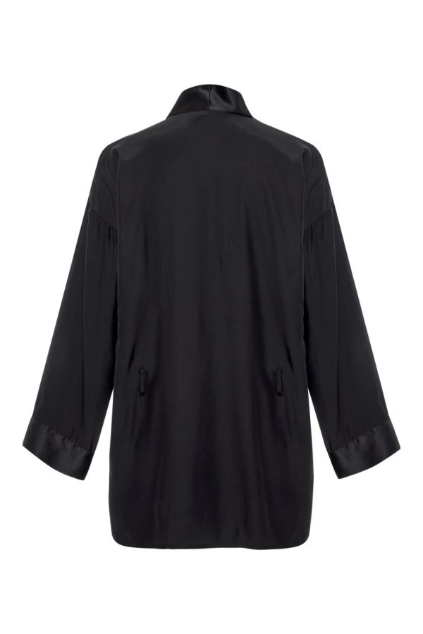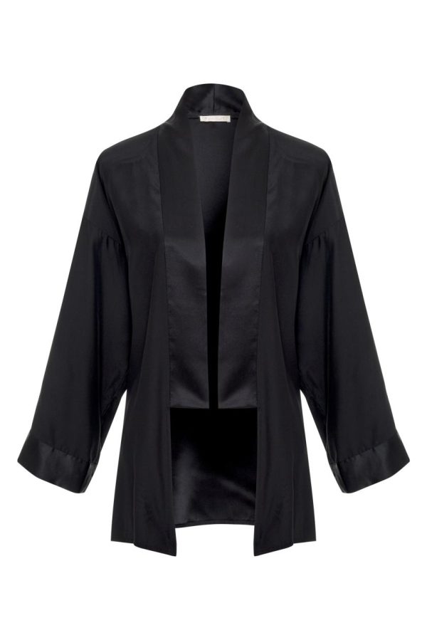 The Modern Silk Robe is crafted from pre-washed silk, the body is matte while the collar and cuffs feature a modern contrast in shiny charmeuse. Include a belt to cinch the kimono style for a perfect fit. Style it open for a light cardigan or blazer look that will keep you effortlessly elegant all day.
