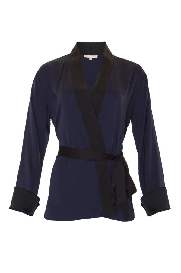 Crafted from lightweight, luxurious viscose, the Smock Wrap Shirt Kimono offers exceptional drape and breathability for all-day comfort. It features contrasting details on the cuffs, center front, and belt, adding a refined touch to this versatile piece. Ideal for layering or wearing alone.