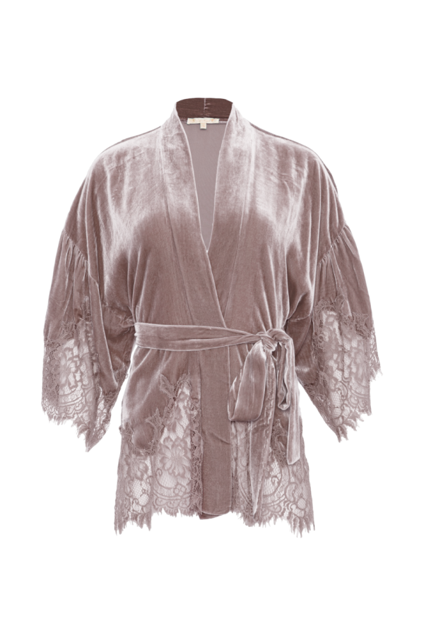 Gold Hawk Kimonos & Robes | Women Velvet Coco Lace Kimono Nude Crystal