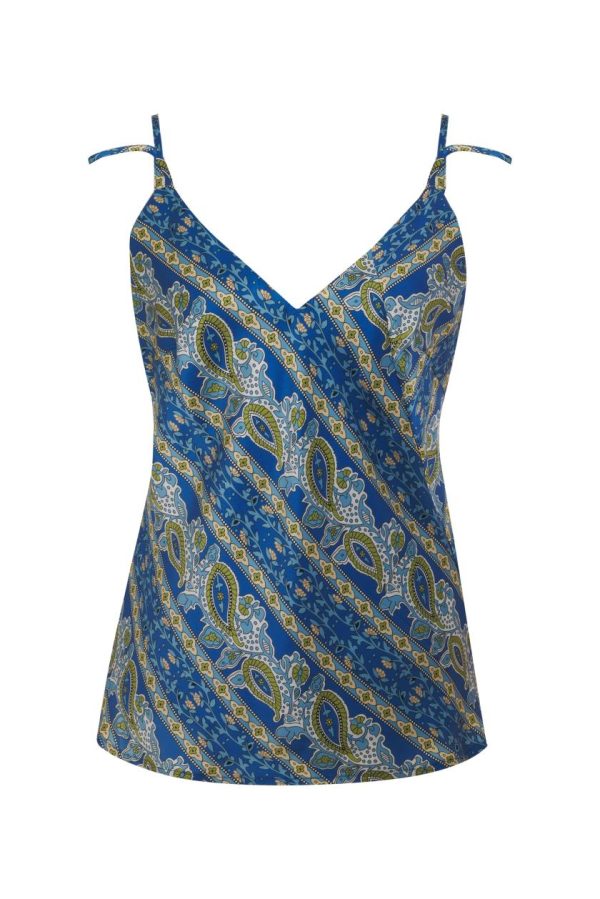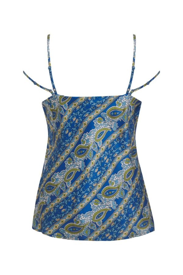 Silk v neck double strap camisole, cut on bias. The double straps on this cami allow for the option of wearing both up, or one up and one down.