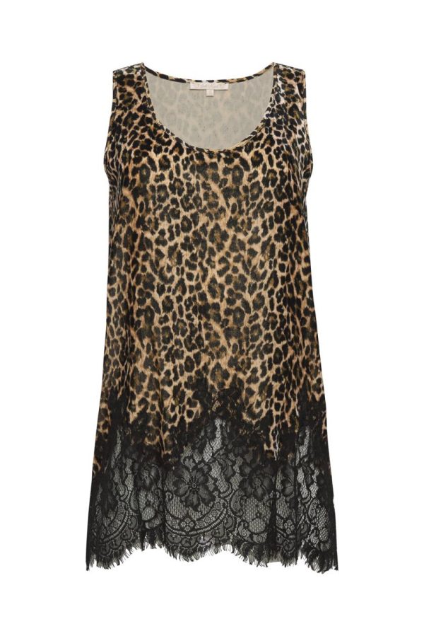 Tank top in leopard printed velvet. Finished with lace at the hem.
